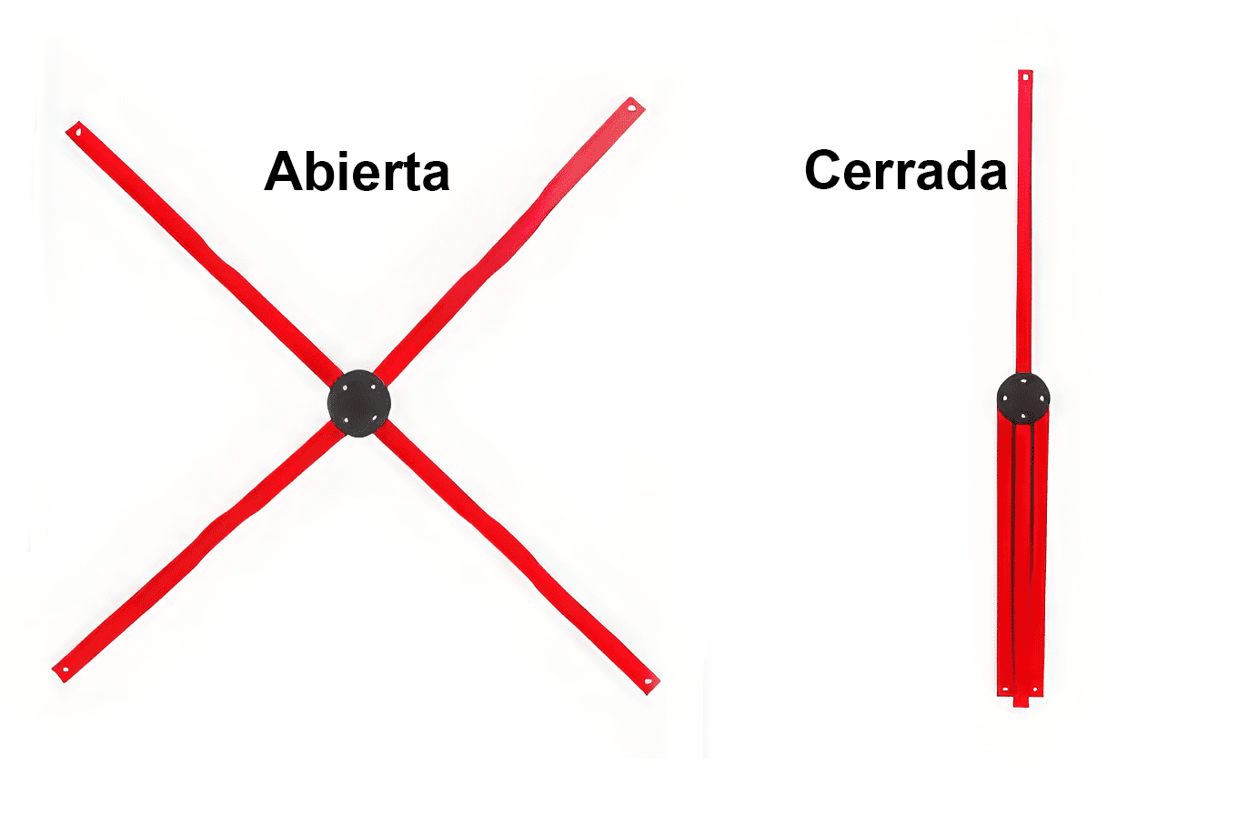 Compuesta de dos marcos y dos crucetas reforzados en sus nodos con piezas en polímeros de ingeniería de alta resistencia , uniones mecánicas por medio de tronillos zindicados
